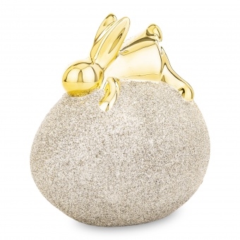 Uroczy króliczek leżący na brokatowym jajku w kolorze złotym. Wykonany z dolomitu.Wymiary: 12x11x8 cm